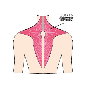 その筋肉は僧帽筋っていう名前で、背中までくっついてるんです。